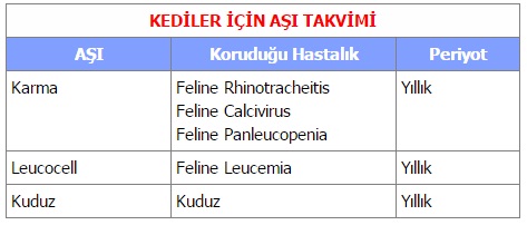 Kedilerin kendi sağlığı için yapılan aşılamalar ise,